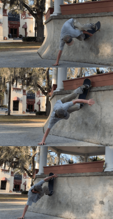 (Canon Crovo) Canon Crovo majorly clearing the chain of a stairway. The lack of travel through Downtown St. Augustine has allowed many locals to stay healthy, and perform recreational activities, while social distancing themselves at the same time.