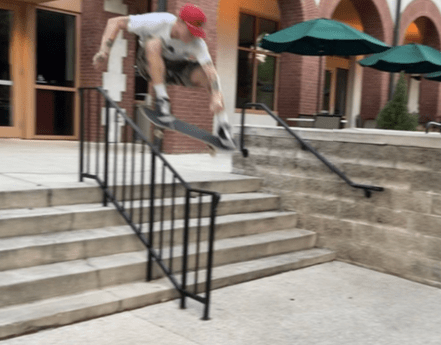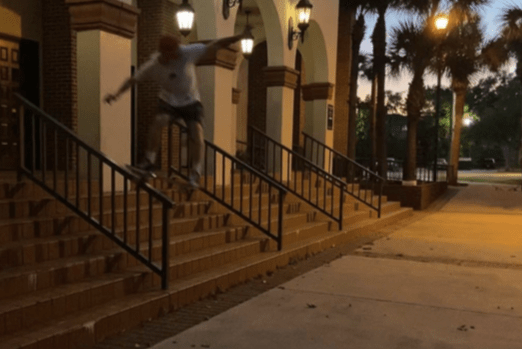 (Canon Crovo) Canon Crovo doing a 5-0 down a rail in Downtown St. Augustine Fla.. Typically, most skaters have to face the issues of obstacles, such as; security guards, pedestrians, and the conditions of the environment, making it very difficult to land tricks when street skating.