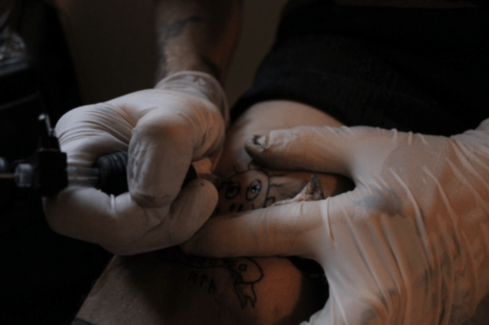 (Canon Crovo) Unsure about the number of tattoos he has, Canon dips the needle into the ink to add onto his collection. So far, Canon has given over 300 tattoos, practicing his tattoo skills and building his portfolio to further his career.